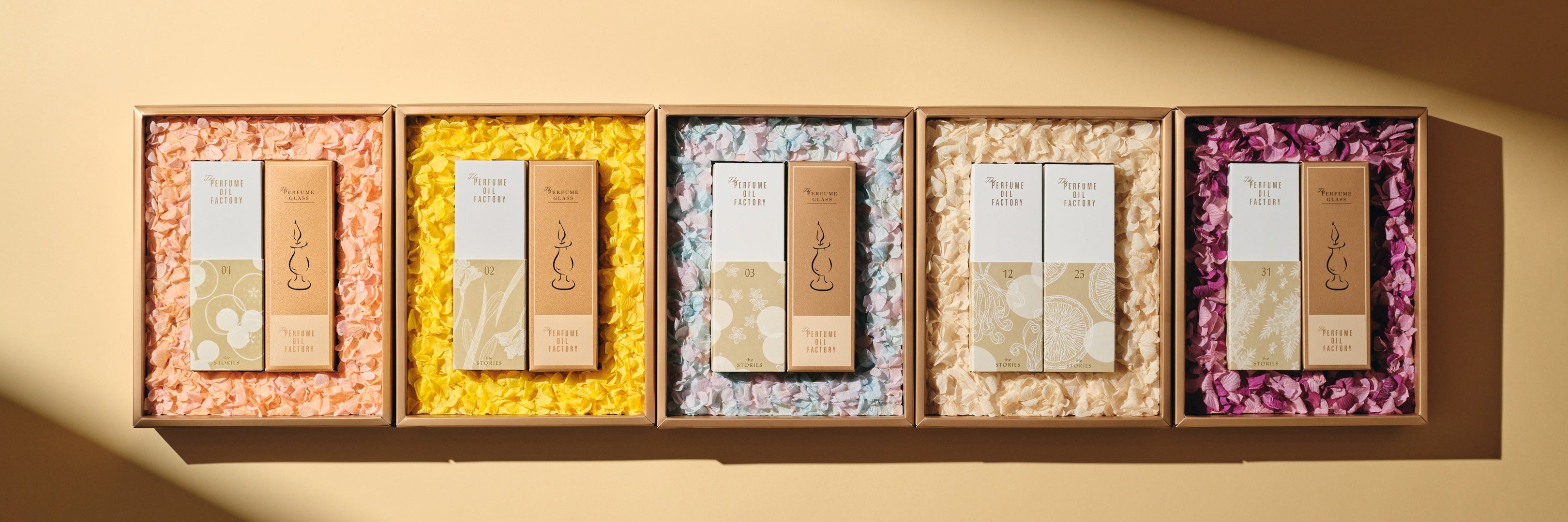 31種類のオリジナルパフュームオイルは、 1~31の番号が商品名となっており、パッケージに記載されています。商品を組み合わせることで、日付の様に見せる事ができるため、 記念日や誕生日のギフトにおすすめです。